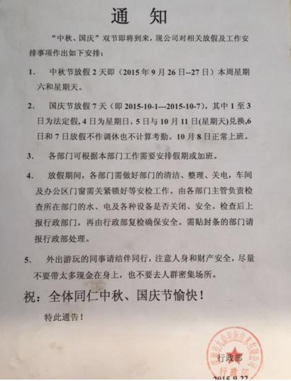 關于“中秋國慶”雙節(jié)放假調休通知